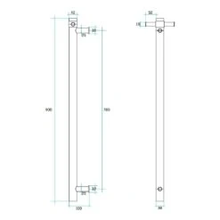 Thermogroup VS900SHB Matt Black Square Vertical Single Bar Heated Towel Rail-W142xH900xD100mm