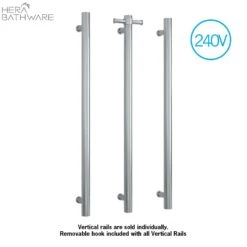 Thermogroup VS900HBN BrushedNickel Round Vertical Single Heated Towel Rail-W142xH900xD100mm
