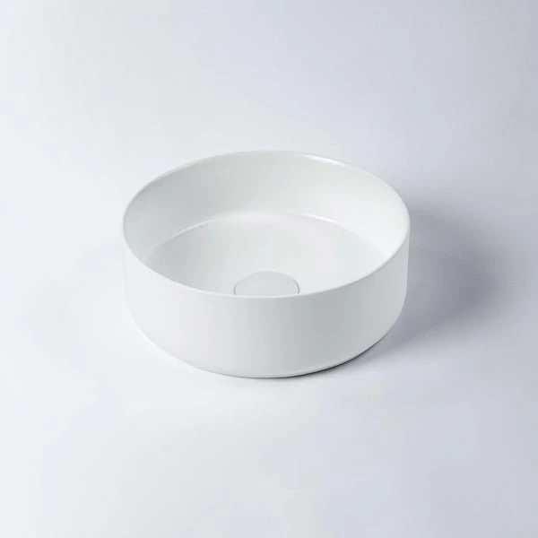 A mini matte white ceramic circle basin perfect for smaller bathroom spaces