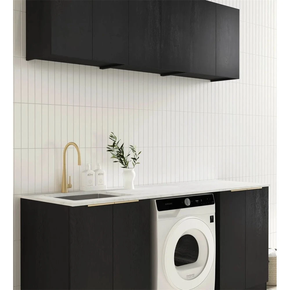 | Base Cabinet (Double Door)632mm x1 Wall Cabinet (Double Door) 632mm x3 Stone Top L1960xD600xH20mm End Panel x2 Laundry Sink Stainless Steel x1 | Base Cabinet (Double Door)632mm x2 Wall Cabinet (Double Door) 632mm x3 Stone Top L1980xD600xH20mm Laundry Sink Stainless Steel x1 | Base Cabinet (Double Door)632mm x2 Wall Cabinet (Double Door) 632mm x2 Tall Washing Machine Cabinet Stone Top L1300xD600xH20mm Laundry Sink Stainless Steel x1 |