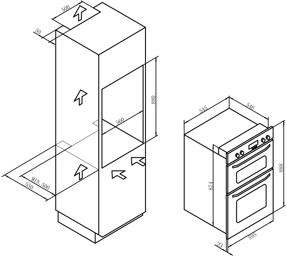 - Cut-out Dim. (W x D x H) : 560 x 550 x 880mm