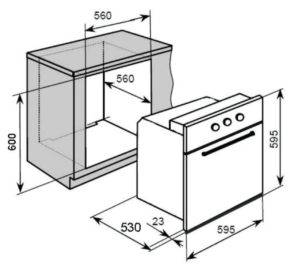 - Cut-out Dim. (H x W x D) : 600 x 560 x 560 mm (min)