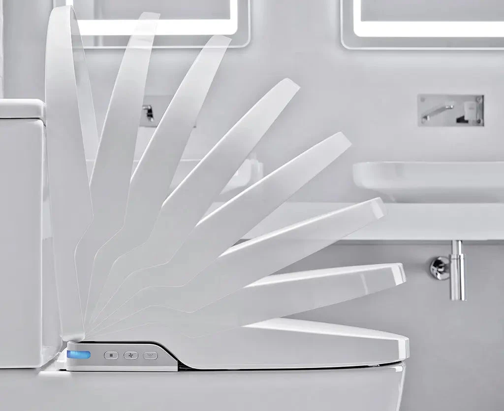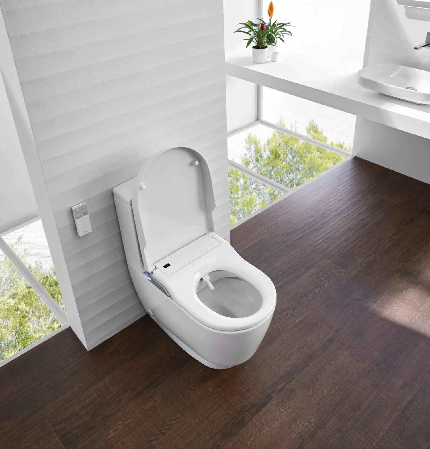- Rimless vitreous china with integrated shower bidet and drying functions, automatic user detection and convenient nightlight