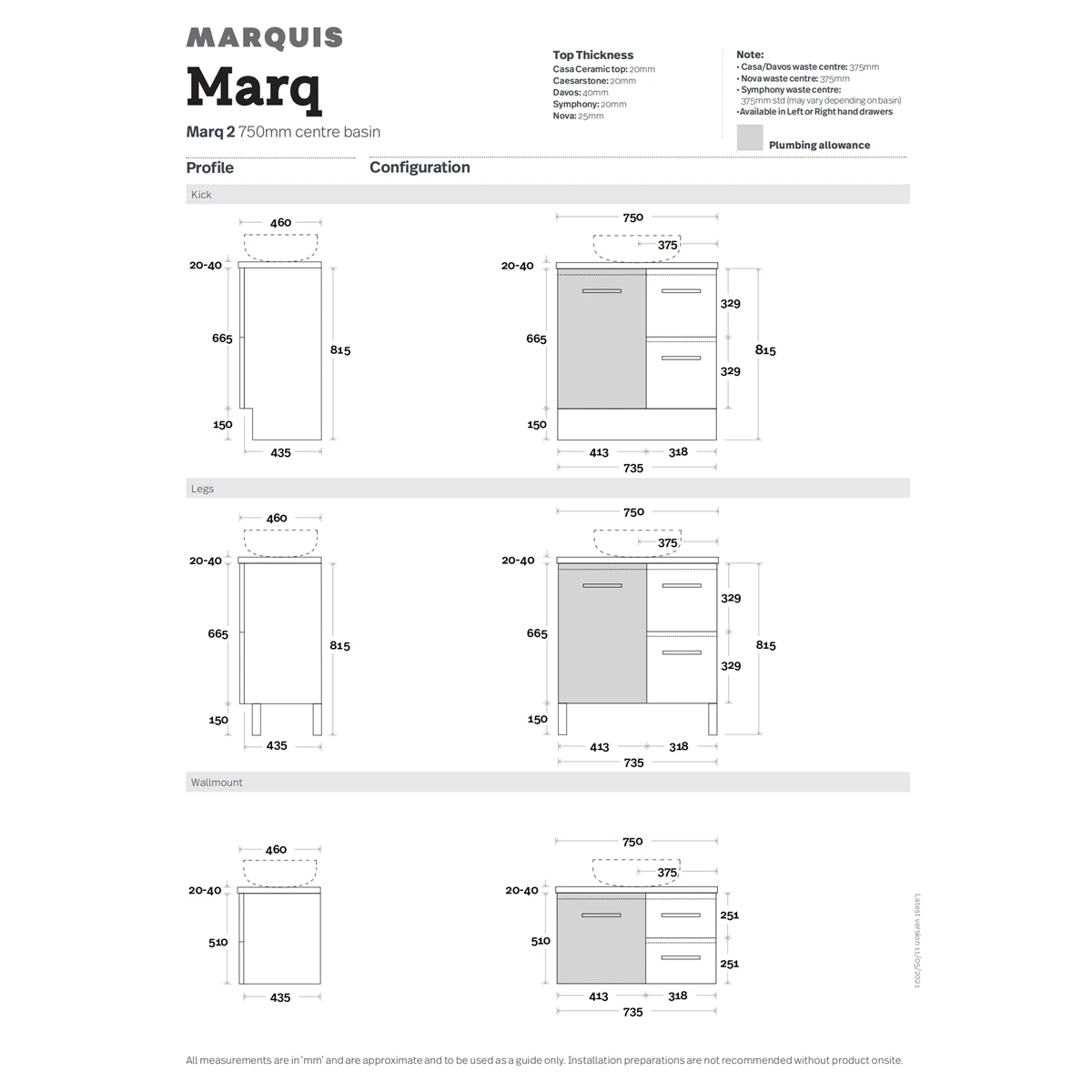 - Marq Wall Hung Vanity is available in 600mm, 750mm, 900mm, 1200mm, 1500mm, and 1800mm