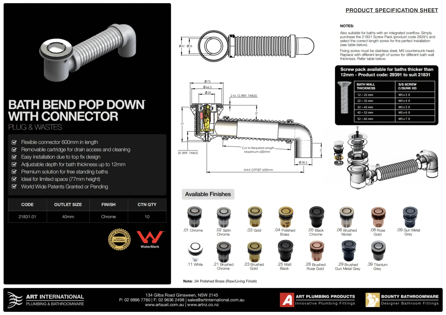 To make the revolutionary Pop Down® waste suitable for the vast majority of baths we are adding 1 new product to this range. The “Bathdinger” Pop Down®. This new addition will ensure that everyone can enjoy the beauty and functionality of these products in their basin and bath.