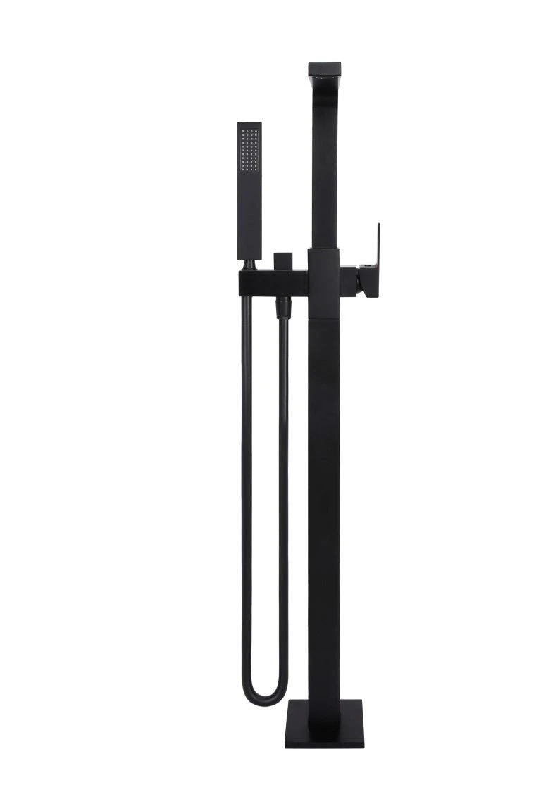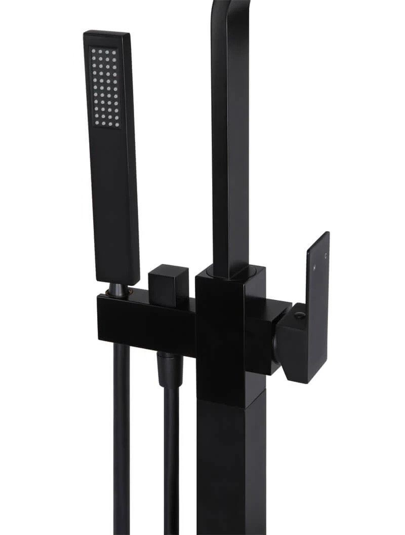 The Meir Black Freestanding Bath Mixer is stylish and functional; due to its 360-degree swivel spout and striking presence.