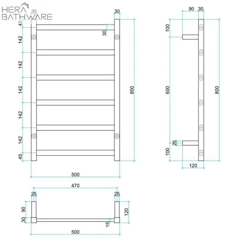 Heated Towel Rails are an affordable luxury for every bathroom for warming and drying your towels. The BS28M Heated Towel Rail is a 500×800 6 bar polished stainless steel ladder rail which features multiflex wiring. The flat profile of the rail blends in well with square tapware and it provides space for hanging two towels.