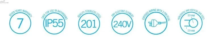 The electric towel rail is designed to rapidly heat up and reach a temperature of around 45-55 degrees. The rail can be operated using the switch on the powerpoint or using a plug in powerpoint timer. As the rail is electric it is very energy efficient and can cost as little as a $1 a week to run.