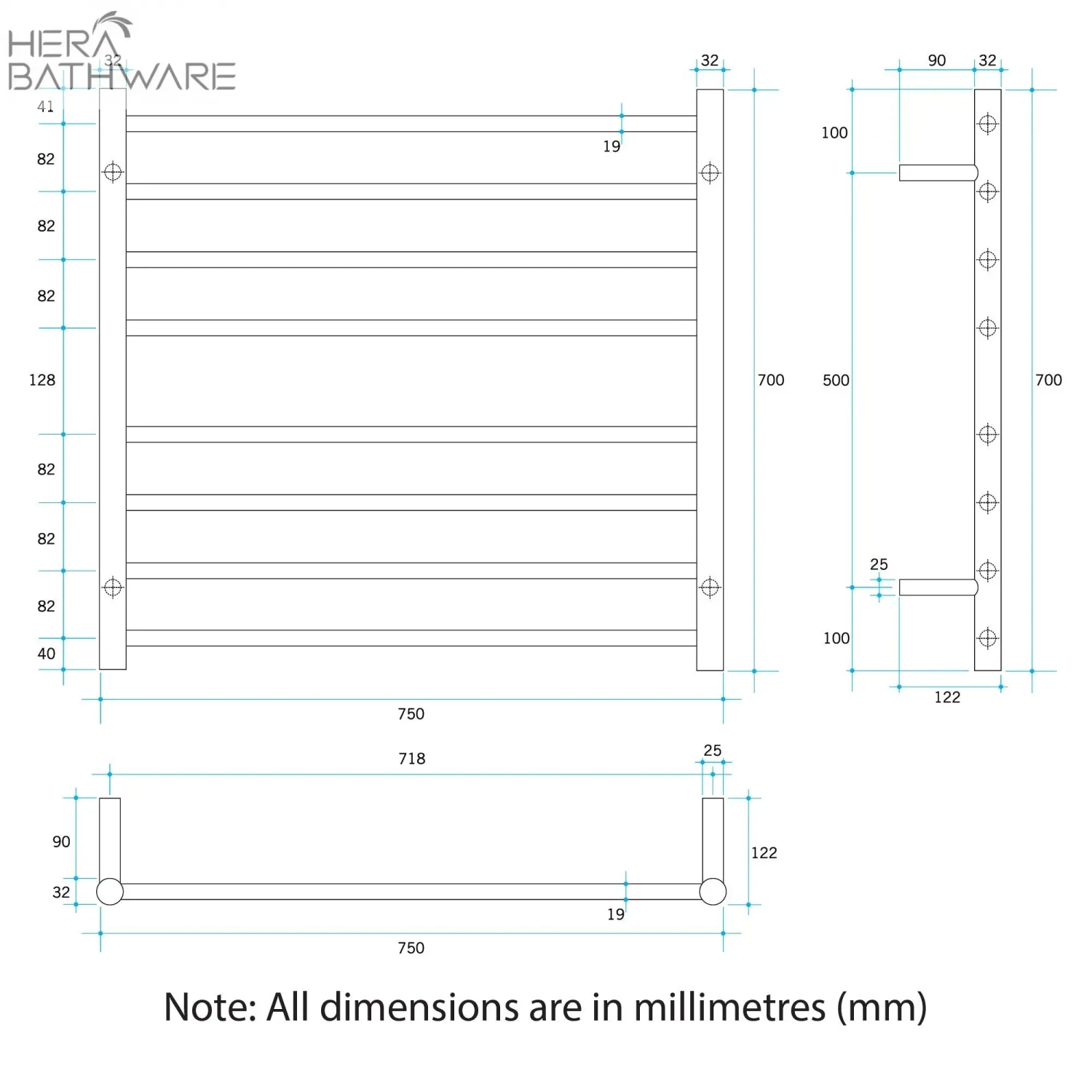 Heated Towel Rails are an affordable luxury for every bathroom for warming and drying your towels. The SRB33M Heated Towel Rail is a 750x700mm 8 bars rail ideally sized to fit one towel. The brushed stainless finish is very similar to a brushed nickel finish and can be used to compliment your brushed nickel tapware.
