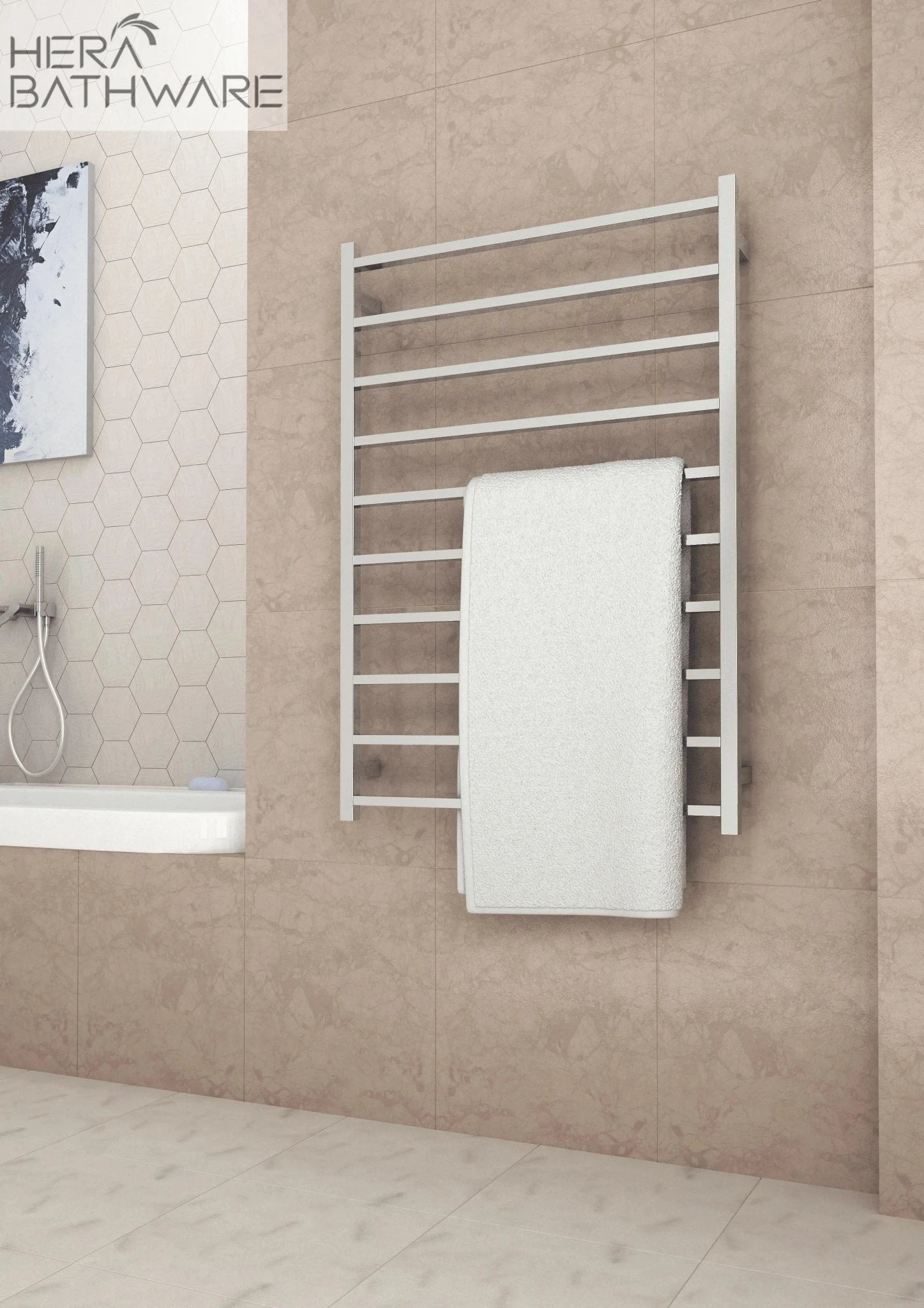 The electric towel rail is designed to rapidly heat up and reach a temperature of around 45-55 degrees. The rail can be operated using an on/off switch however we recommend using a timer to allow you to set and forget and control your running costs. As the rail is electric it is very energy efficient and can cost as little as a $1 a week to run.