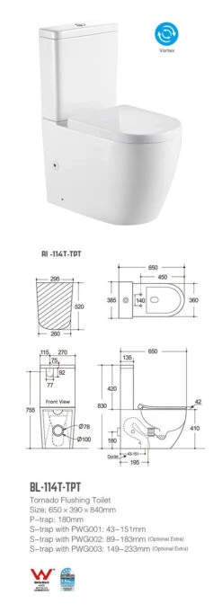 Gemelli Back To Wall Closed Coupled Rimless Toilet Suite With Seat