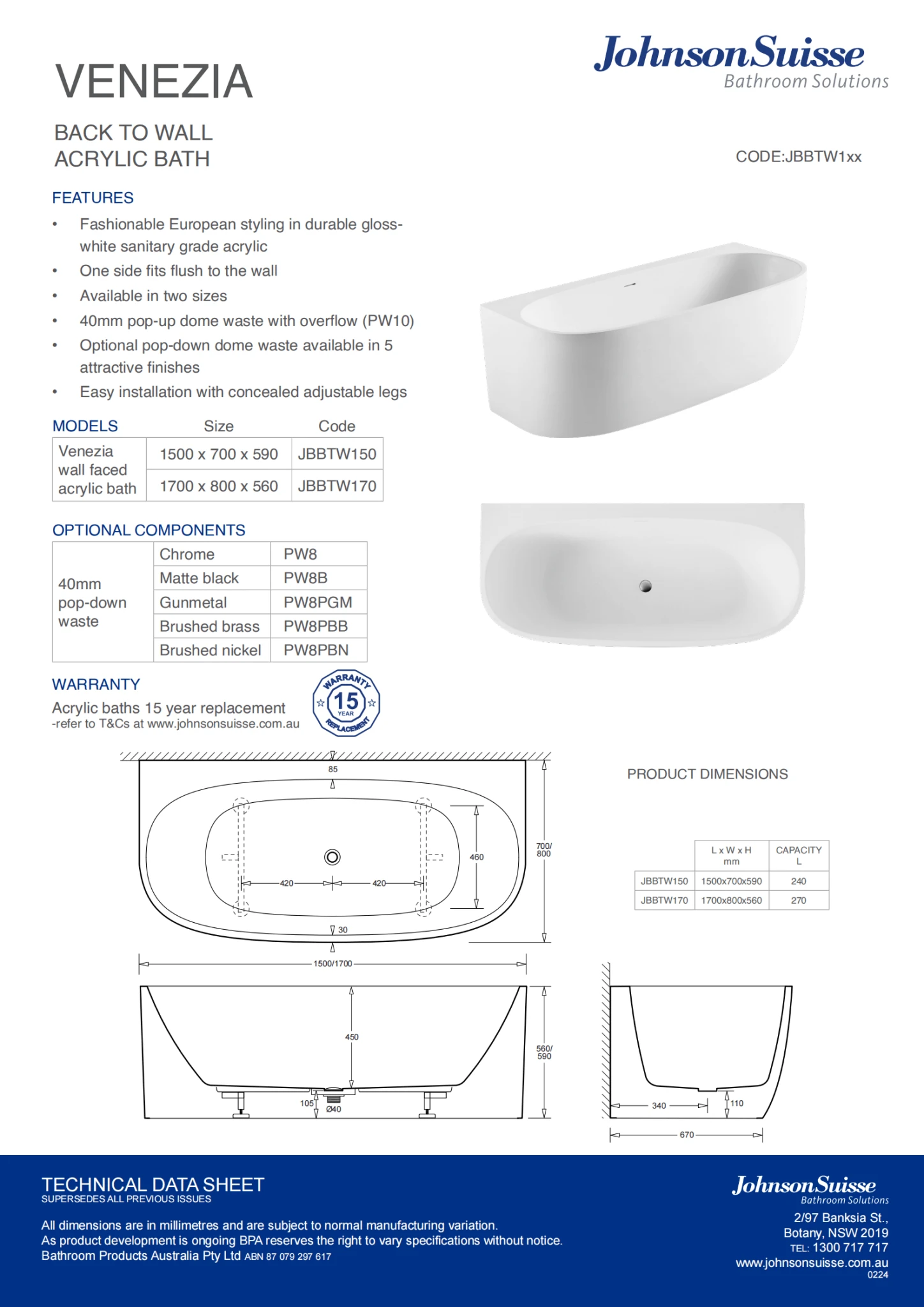 The bold lines of the Venezia range embody a timeless and versatile design that suit a modern bathroom interior. Ultra thin edges make the cosmopolitan Venezia bath range timeless and versatile suitable for any modern bathroom interior.