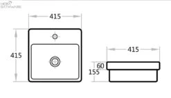 Basin: L400mm x W400mm x H115mm (L15.7in x W15.7in x H4.5in)